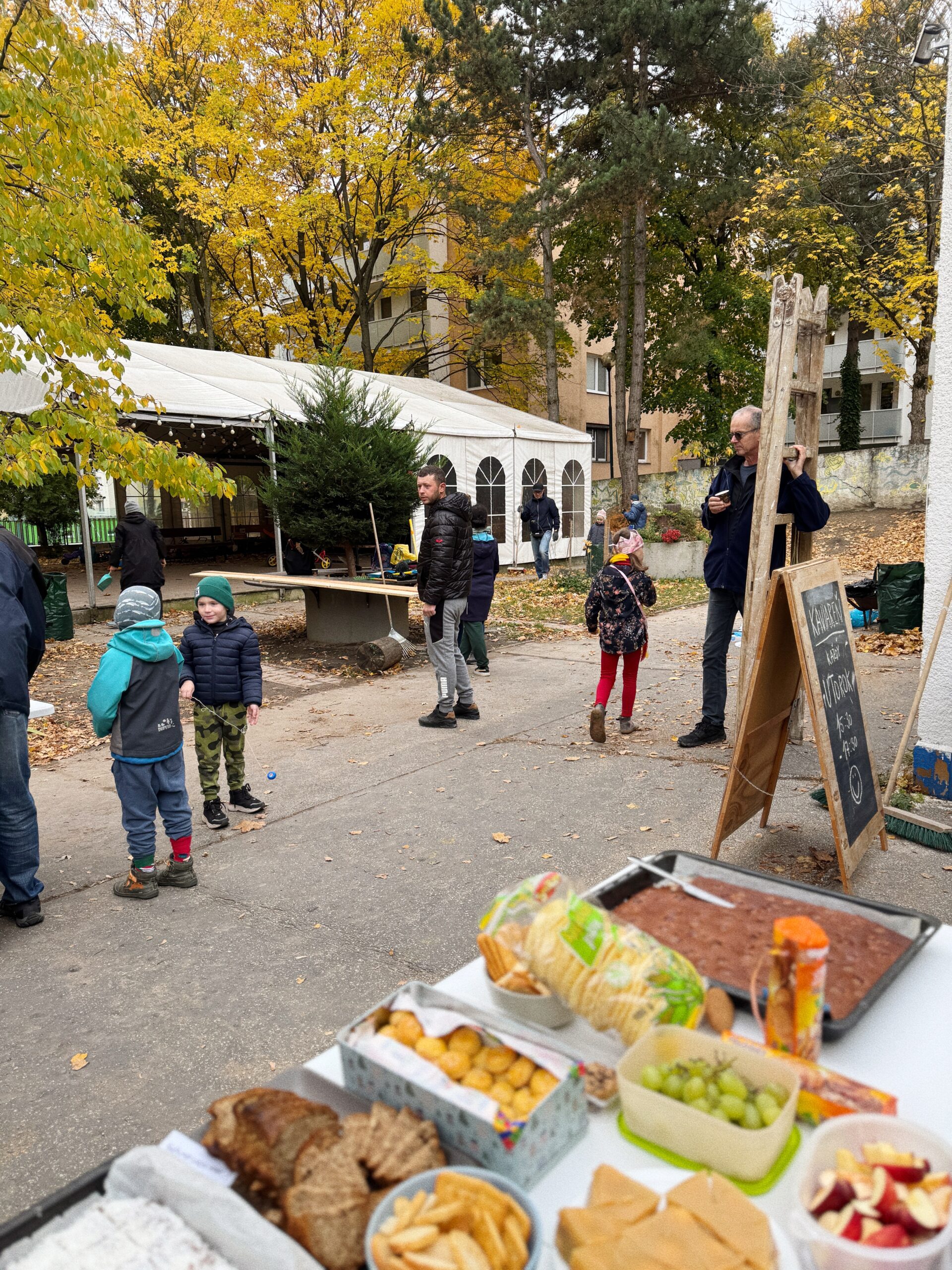 Stretli sme sa na dvore učitelia, rodiny a priatelia našej školy. Čas pri práci ubiehal od prvého momentu veľmi príjemne a veselo. Stihli sme toho naozaj veľa a náš dvor tak vyzerá zas o kus krajšie. Postavili sme nový kompostér, ktorý sme rovno zaplnili kopami listov, čo sme nazhŕňali z dvora, postavili sme nový záhon, postarali sa o všetko zasadené, poobťahovali všetky značky farbou, vyčistili a pretriedili sklad, opravili sme mnoho vecí hore v škole a škôlke, pozametali horné strechy a mnoho ďalšieho. Práca rýchlo ubiehala, ako to už býva, keď máme dobrú spoločnosť. A to je to, na čo sa tiež vždy veľmi tešíme. Na priestor stretnutia, rozhovorov pri práci, či občerstvení. Ďakujeme a tešíme sa už na ďalšiu. 🙂